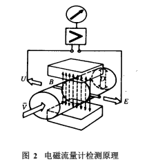 具有導電性的被測介質(zhì)液態(tài)以一定的速度流動時,則在與流動方向垂直的方向上產(chǎn)生與流量成比例的感應(yīng)電勢 E,其值為