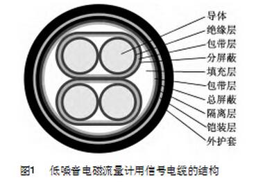 在石油化工、冶金、食品飲料、制藥、造紙、染料等眾多領域,通常采用污水處理流量計對流動的各種混濁、懸浮液體介質(水煤漿、泥漿污水、水泥混凝土漿、紙漿、金屬流體等)的流量進行測量。污水處理流量計用信號電纜主要用于將污水處理流量計的實際測量結果信號傳輸至顯示系統(tǒng)。隨著污水處理流量計測量系統(tǒng)中電路的日趨復雜和對信號傳輸要求的逐步提高,傳統(tǒng)污水處理流量計用信號電纜的性能已無法滿足使用要求,因此本公司開展了一種新型低噪音污水處理流量計用信號電纜的研制。