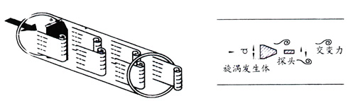 在流體中設(shè)置三角柱型旋渦發(fā)生體,則從旋渦發(fā)生體兩側(cè)交替地產(chǎn)生有規(guī)則的旋渦,這種旋渦稱為卡門渦街旋渦,如右圖所示,旋渦列在旋渦發(fā)生體下游非對稱地排列。設(shè)旋渦的發(fā)生頻率為f,被測介質(zhì)平均流速為 ,旋渦發(fā)生體迎流面寬度為d,表體通徑為D,即可得到以下關(guān)系式: