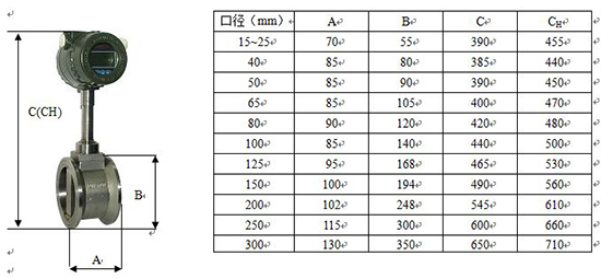 法蘭式渦街流量計(jì):DN15、DN20、DN25、DN32、DN40、DN50、DN65、DN80、DN100、DN125、DN150、DN200、DN250、DN300。