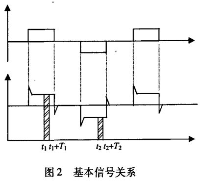 腐蝕性污水流量計一般都采用工頻交流電源供電,其電源電壓的幅值和頻率的變化都會給腐蝕性污水流量計帶來電源性干擾噪聲。對電源電壓的幅值變化,因采用多級集成穩(wěn)壓,一般而言電源電壓的幅值變化對電磁流量的測量精度影響不大。當(dāng)電源電壓的頻率波動時,雖然其波動范圍有限,但對腐蝕性污水流量計測量精度影響較大。為了解決工頻干擾問題,實現(xiàn)對流體流速感應(yīng)電勢e柚信號的準(zhǔn)確測量,需利用以下基本關(guān)系:①勵磁周期為工頻周期的整數(shù)倍,即勵磁頻率為50/nHz(n為偶數(shù));②正負(fù)勵磁下的同相位采樣。圖2是對應(yīng)低頻矩形波勵磁形式下的典型電勢信號形式,按上述關(guān)系在一個勵磁周期下,若假設(shè)t。和t:點為工頻干擾的等效干擾點,且采樣寬度T=T1=T2,則e –ab的基本算式為:,