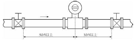 膠水管道流量表的安裝質(zhì)量對(duì)其測(cè)量結(jié)果的影響較大,因此在安裝時(shí)需要注意幾個(gè)問題。*先,膠水管道流量表直管段的選擇在配管時(shí)一定要按照要求進(jìn)行選擇,一般選擇流量計(jì)通徑與工藝管道通徑相同,即可滿足工程需要,而且安裝方便、壓力損失小,流量計(jì)直管段上游側(cè)的長(zhǎng)度不少于5倍工藝管道直徑,下游側(cè)的長(zhǎng)度不少于3倍工藝管道直徑(圖2)。但在流速太慢而又要求精度較高或需要變徑的應(yīng)用場(chǎng)合,可選擇通徑小于工藝管道通徑的流量計(jì),以提高測(cè)量精度,此時(shí)流量計(jì)上、下游必須加裝異徑管,且進(jìn)口異徑管上游側(cè)應(yīng)有長(zhǎng)于10倍工藝管道直徑的直管段,下游側(cè)應(yīng)有長(zhǎng)于5倍工藝管道直徑的直管段(圖3)。