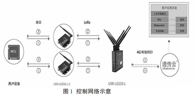 基于 LoRa 技術(shù)的無線流量計由控制,計量,通信,電源,存儲五個模塊組成。以液體流量計為主體的計量模塊將采集到的供暖管道數(shù)據(jù)發(fā)送到通信模塊,基于 LoRa 技術(shù)的通信模塊將流量數(shù)據(jù)存儲并且發(fā)送到由管理人員監(jiān)控的控制模塊,管理人員通過控制模塊和通信模塊向流量計發(fā)送指示。電源模塊是無線流量計的能源中心,可以為流量計的其他模塊提供動力支持。流量計安裝完畢后可在小區(qū)內(nèi)形成控制網(wǎng)絡,網(wǎng)絡示意圖如圖 1 所示。