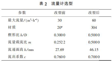 2) 為了解決泵出口流量計頻繁泄漏以及流量較低不能滿足工藝需求的問題,更換新型流量計,其相關(guān)參數(shù)見表 2。 更換后的流量計運(yùn)行 4 000 h后未出現(xiàn)泄漏現(xiàn)象。