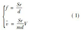 式中: 珋v 為旋渦發(fā)生體兩側(cè)平均流速,m / s; d 為旋渦發(fā)生體特征寬度,m; Sr 為斯特勞哈爾常數(shù),無量綱常數(shù); V 為管道流體平均流速,m / s; m 為旋渦發(fā)生體兩側(cè)弓形面積與管道截面積之比。 如,對于寬度為 d 的三角柱,有: