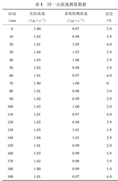 由表 2 測(cè)量數(shù)據(jù)可知,系統(tǒng)在測(cè)量低流速液體時(shí)(流速小于 1 m/s)誤差較大,達(dá)到 5%,當(dāng)待測(cè)液體的流速增大時(shí)(大于 1.4 m/s),誤差逐漸減小,基本維持在 3%以?xún)?nèi)。由此可見(jiàn)系統(tǒng)具有較高的檢測(cè)精度,尤其是當(dāng)管道中的液體流速較高時(shí),系統(tǒng)的檢測(cè)誤差不超過(guò) 3%,達(dá)到了設(shè)計(jì)預(yù)期。
