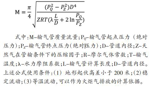 天津 LNG 設置兩座插入式電磁流量計,單臺設計處理量 60t/h, 兩臺火炬并列運行,一用一備。自 LNG 儲罐及 BOG 系統(tǒng)來的超壓 BOG 經(jīng) PV 閥后進入火炬氣排放總管,經(jīng)分液罐沉淀 BOG 中夾雜的液滴后進入火炬燃燒放空。 插入式電磁流量計設置四級排放,具體設置如表 1。 2 火炬氣排放量計算方法根據(jù)水平輸氣管流量計算基本公式:
