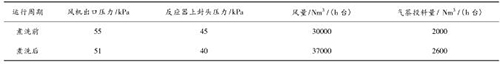 智能型渦街流量計(jì)煮洗吹掃后,裝置運(yùn)行期間無燃爆事故,且裝置運(yùn)行的風(fēng)量明顯提高,系統(tǒng)阻力明顯降低,投料量增加。現(xiàn)將煮洗前后的運(yùn)行數(shù)據(jù)對(duì)比如下: