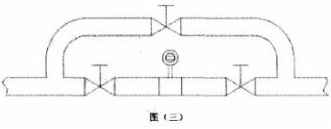 5.被測(cè)介質(zhì)是嚴(yán)重污濁液體過容易在管道結(jié)垢的液體,可以在安裝傳感器的測(cè)量管道上加一個(gè)旁通管,以便于拆卸清洗。如圖三所示。