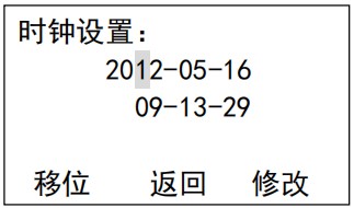 設(shè)置界面 13: 時鐘設(shè)置,校準(zhǔn)當(dāng)前運(yùn)行的日期和時間,此參數(shù)出廠時已校準(zhǔn),設(shè)置影響記錄的保存和查詢,在運(yùn)行前務(wù)必確認(rèn)是正確的當(dāng)前日期,如錯誤將造成記錄保存的混亂。