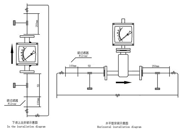 4.若介質(zhì)中含有固體雜質(zhì),應(yīng)在閥門和直管段間加裝過濾器;若介質(zhì)中含有鐵磁物質(zhì),應(yīng)在金屬浮子流量計(jì)的上游安裝磁過濾器。