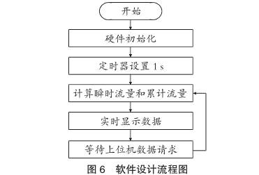 上電后程序?qū)SP的硬件資源進行初始化,包括中斷系統(tǒng)、GPIO口、定時器/計數(shù)器、通信端口及基本的時鐘設(shè)置。程序每秒對接收到的脈沖進行計數(shù),其除以儀表系數(shù)后的結(jié)果作為瞬時流量,同時在時間上對瞬時流量進行累積,計算出兩種流量后,將其實時顯示在液晶顯示屏上,同時將數(shù)據(jù)保存,**等待上位機電腦對數(shù)據(jù)的讀取。通信采用MODBUS協(xié)議,波特率為9600b/s,無校驗,8位數(shù)據(jù)位,1位停止位。圖6為微處理器功能設(shè)計流程圖。