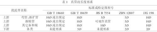 (1)對安裝管路的要求.實際工程上,電極平面處的流速分布已同初校時有較大的差別,傳感器上游管道連接件的配置是引起特殊的流速分布的因素之一,使用中就有可能出現(xiàn)量值偏移.對傳感器前后直管段的要求是保證流速以中心軸為對稱分布,獲得儀表測量精確度的必要條件之一,國標GB/T18659-2002等列舉了對漸縮管、上游閥、圓弧彎頭*小直管段長度的要求(見表1).