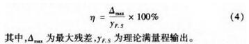 本文采用*小二乘法進行線性度評定,即擬合直線為*小二乘直線。*小二乘直線保證了傳感器至極輸出的平均值對它的偏差的平方和為*小,即可以保證擬合直線得到的結(jié)果與實測結(jié)果之間的偏差很小,更具可靠性。根據(jù)定義,線性度即是校準曲線對這條*小二乘擬合直線的偏離程度。