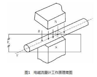 硝酸管道流量計是利用法拉*電磁感應(yīng)定律設(shè)計的流量測量儀表,用于測量導(dǎo)電液體的體積流量。根據(jù)法拉*電磁感應(yīng)定律,當(dāng)導(dǎo)體切割磁力線運動時,導(dǎo)體內(nèi)將產(chǎn)生感應(yīng)電動勢Ex(圖1),方向根據(jù)右手定則確定,感應(yīng)電動勢Ex的大小與磁場的磁感應(yīng)強度B、傳感器管道的內(nèi)徑D和流過導(dǎo)電液體的流速V成正比,B、D、V三者相互垂直,即Ex=BDV。