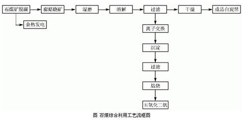 本項(xiàng)目為石煤綜合利用的項(xiàng)目?,F(xiàn)有提釩工藝產(chǎn)生大量廢渣。其主要成分為二氧化硅,但其中夾帶有大量的釩資源,釩資源利用率低,同時(shí),該廢渣中堿含量較高,如將廢渣隨意堆放,易造成環(huán)境污染。本項(xiàng)目*大特點(diǎn)在于利用現(xiàn)有提釩工藝中的提釩二次渣作為制備沉淀法白炭黑的主要原料,將廢渣中的硅資源得到充分利用。為企業(yè)創(chuàng)造了新的經(jīng)濟(jì)增長(zhǎng)點(diǎn),同時(shí),解決了現(xiàn)有提釩生產(chǎn)中造成的釩資源浪費(fèi)和環(huán)境污染問題,此外,該項(xiàng)目利用現(xiàn)有提釩生產(chǎn)線脫碳工序中產(chǎn)生的余熱作為加熱熱源,取代了傳統(tǒng)工藝以煙煤為主要燃料的方法,即對(duì)生產(chǎn)中產(chǎn)生的余熱得到了有效合理的利用,又進(jìn)一步降低了產(chǎn)生的燃料成本,達(dá)到了節(jié)能減排,資源綜合利用的目的,工藝流程框圖如下。