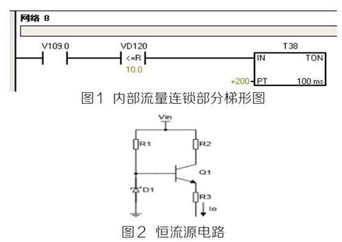 (2)PLC及模塊。PLC及模塊是自動化控制系統(tǒng)主要設備,且PLC及模塊屬于高集成高精密電子設備,保持室內整潔舒適,可以提高自動化系統(tǒng)運行穩(wěn)定性。PLC及模塊硬件運行可靠,內部控制程序是其控制核心軟件,如PLC硬件出現(xiàn)故障或損壞一般直接更換,但原內部控制軟件無法上傳,整個控制系統(tǒng)成失控狀態(tài)。所以其內部控制程序在調試驗收合格后應及時備份并做好標記,為以后修復PLC故障提供保障。PLC系統(tǒng)的維護技術人員需掌握一定基礎PLC控制邏輯原理,對準確判斷PLC故障點有很大的幫助。例如選礦廠水泵房S7-200系列PLC自動抽水系統(tǒng)出現(xiàn)如下故障 :觸摸屏能控制變頻器啟動水泵抽水,但在短時間內會自動停泵,導致無法正常抽水。通過故障現(xiàn)象可初步判斷PLC及模塊硬件設備正常,主要由于某個變量有問題導致連鎖停機。打開備份PLC控制梯形圖程序進行相關分析,原來是水流量計瞬時流量數(shù)值做了連鎖,其在一定時間內瞬時流量不大于10m 3 /h時,自動停泵,電磁流量模擬量輸出電流值僅為4ma且無變化,確定水流量計有故障??膳R時應急維修,模擬量模塊輸入模擬電流值10ma~20ma之間一固定數(shù)值即可恢復正常運行。制作簡單恒流源電路代替水流量計輸出的模擬電流量,實現(xiàn)解決水泵無法正常運行的故障。