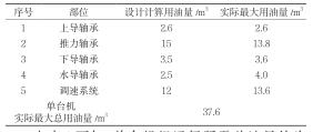 由表1可知,單臺(tái)機(jī)組運(yùn)行所需總油量約為37.6m3,其中各軸承所需油量約為24m3,均超出設(shè)計(jì)計(jì)算總油量。機(jī)組運(yùn)行所需總油量超出一個(gè)運(yùn)行油桶的總?cè)莘e,至少需用2個(gè)油桶來(lái)盛放。為保證機(jī)組各軸承用油和調(diào)速系統(tǒng)用油的油品質(zhì)量,機(jī)組排油時(shí)將各軸承所用透平油(約為24m3)排至一個(gè)運(yùn)行油桶中,將調(diào)速系統(tǒng)所用透平油(約為13.6m3)排至另一個(gè)運(yùn)行油桶中,避免混合造成油質(zhì)化驗(yàn)指標(biāo)不滿足用油設(shè)備的要求。