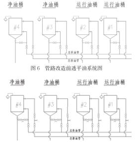 (2)改造后,單個(gè)油桶內(nèi)透平油的過(guò)濾和轉(zhuǎn)移工作中需操作的閥門減少(僅需操作2個(gè)支管上小通徑的閥門),極大地簡(jiǎn)化操作流程。改造前,每個(gè)油桶的油必須流入油處理室中的機(jī)組透平油供油和回油總管上,才能再次經(jīng)支管閥門進(jìn)入相應(yīng)油桶,好少要操作四個(gè)閥門(包括總管上臨時(shí)接口的大通徑閥門)。