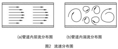 當 Re > Rec 時,管道內流體為湍流(湍流是流體的不規(guī)則運動,流場中各種量**間和空間坐標發(fā)生紊亂地變化),如圖 2(b)所示。