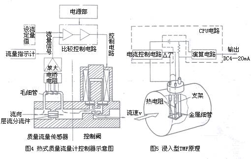 市場(chǎng)上熱分布式tmf按測(cè)量管內(nèi)徑分為細(xì)管型(也有稱(chēng)毛細(xì)管型)和小型兩大類(lèi),結(jié)構(gòu)上有較大區(qū)別。小型測(cè)量管儀表只有直管型,內(nèi)徑為4mm;細(xì)管型測(cè)量管內(nèi)徑僅0.2~0.5mm。稍大者為0.8~1mm,極容易堵塞,只適用于凈化無(wú)塵氣體。細(xì)管型儀表還有一種帶有調(diào)節(jié)單元和控制閥等組成一體的熱式質(zhì)量流量控制器,結(jié)構(gòu)如圖4所示。