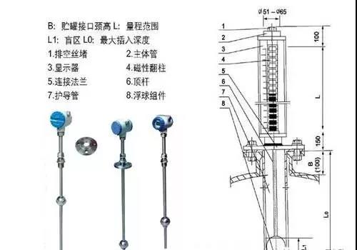 浮球式液位計(液位開關(guān))結(jié)構(gòu)主要基于浮力和靜磁場原理設(shè)計生產(chǎn)的。帶有磁體的浮球(簡稱浮球)在被測介質(zhì)中的位置受浮力作用影響:液位的變化導(dǎo)致磁性浮子位置的變化。