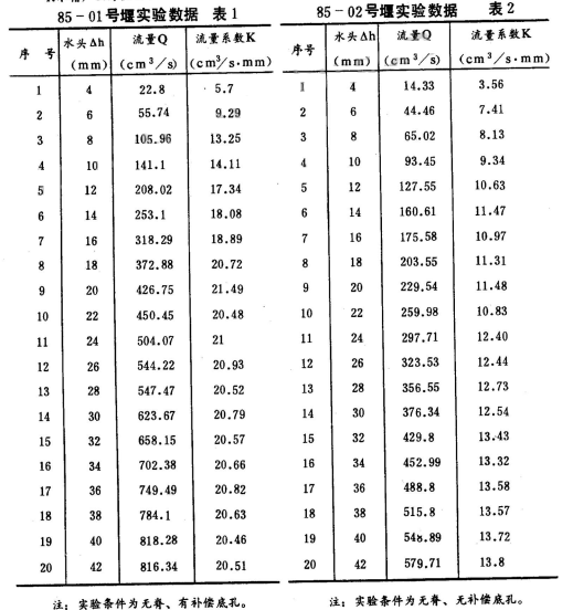 2.無補償?shù)卓椎碾p曲線無脊薄壁堰,見圖8,其流量與作用水頭之間變化關系基本上是線性的,流量系數(shù)K值隨作用水頭升高略有增大。
