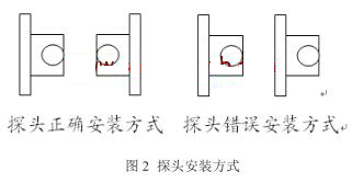 d.探頭安裝時(shí)要注意方向。該廠流量計(jì)一度頻頻歸零,起先找了很多原因,如給流量計(jì)井做防水,更換耦合劑等,但是效果并沒有大的改善。結(jié)果是雖然頻頻更換耦合劑,但二次表中信號(hào)強(qiáng)度*好僅能達(dá)到44dB,且信號(hào)強(qiáng)度不穩(wěn)定,浮動(dòng)較大,導(dǎo)致流量不夠準(zhǔn)確。有時(shí)甚至涂抹一次耦合劑只能正常顯示數(shù)據(jù)一天時(shí)間。后來發(fā)現(xiàn)一個(gè)探頭在兩根鋼帶內(nèi)側(cè),另一個(gè)探頭在兩根鋼帶外側(cè),而兩個(gè)探頭應(yīng)該同在兩根鋼帶內(nèi)側(cè),如圖2所示。錯(cuò)誤安裝方式的結(jié)果是聲波信號(hào)接收效果不好。將安裝方式更改之后,信號(hào)強(qiáng)度*好能達(dá)到70dB,并穩(wěn)定在60-70dB之間,從而保證了流量數(shù)據(jù)的準(zhǔn)確性。