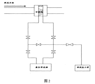 圖2是表示流量件與差壓變送器的連接圖,節(jié)流孔板的安裝必須使節(jié)流件刀口的方向與介質(zhì)的流向相垂直,而且刀口有刃的一面背對來流方向,來流壓力變?nèi)河谡龎簜?cè),才能保證測量的準(zhǔn)確性。